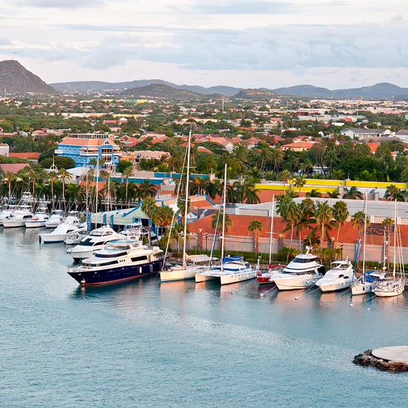Oranjestad, the lovely Dutch-gabled capital, is situated on the southwest coast of Aruba. Enjoy the beautiful beaches, colorful Dutch-style houses, busy duty-free shops, and glittering casinos.